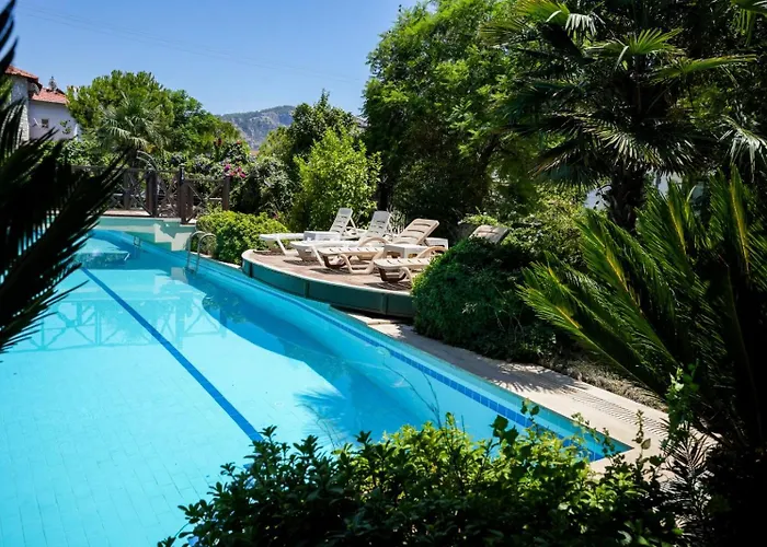 Villa Ozgur med 4 sovrum, som har en terrass med utsikt över trädgården, ligger 35 minuters bilresa från flygplatsen Dalaman. Villan med 4 badrum har soldäck, solterrass och uteplats, medan Lykiska stengravar ligger mindre än 1 km bort.